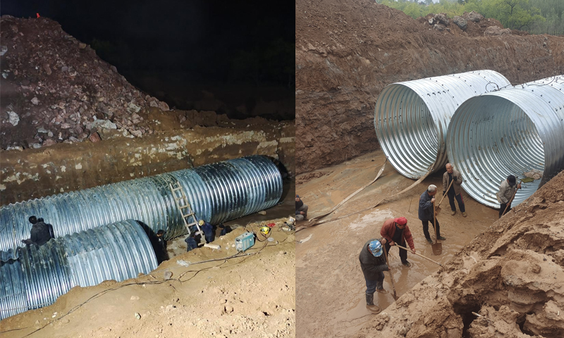 2021年10月10日晚,我公司接到山西晉中公路局緊急電話,208國道山西省祁縣某段公路路基被沖垮,交通被阻斷,山上有十幾個(gè)村莊的群眾被困日常生活受到嚴(yán)重影響,某乳企因鮮乳無法外運(yùn)只能倒掉,情況緊急,現(xiàn)急需波紋鋼管涵搶修道路。